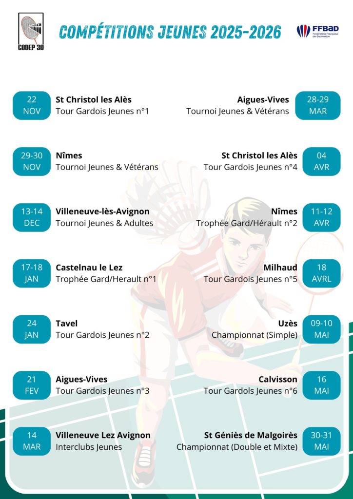 Calendrier 2025 – 2026 – Tournois Jeunes