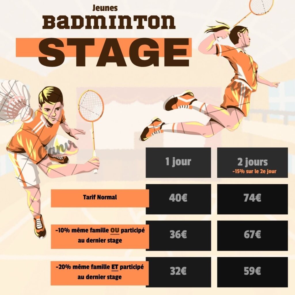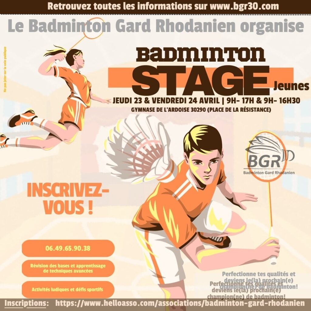 Le club de badminton BGR30 à le plaisir de vous proposer ce stage jeune pendant les vacances d’avril.